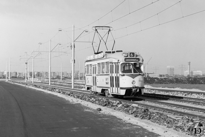 Voorburg, (verlengde) Heuvelweg met PCC-car 1109 op lijn 6 richting Leidschendam op de tweede dag van exploitatie van dit traject.