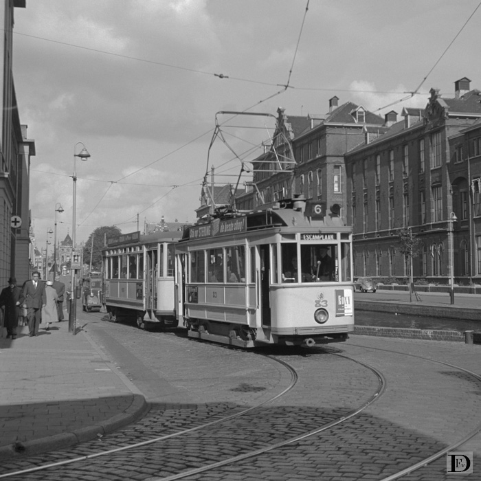 Lijn 6 draait van de Zuid Buitensingel de Hobbemastraat in over de scherpste boog van het H.T.M. net. Dit is het enige punt in het net, die de P.C.C.-cars (nog) niet mogen berijden.