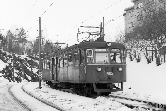 Motorrijtuig 405 van de Kolsåsbanen verlaat station Jar, op weg naar het ondergrondse eindpunt Nationalteatret in de binnenstad van Oslo.