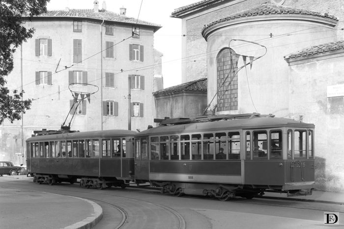 Lijn 15 met twee-assig emr. 1015 in oude beschildering en lijn 23 barré met emr. 2233.