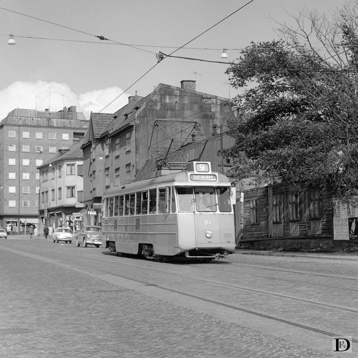 De Karl Johansgatan bij de Kustgatan met emr. 61 op lijn 9.