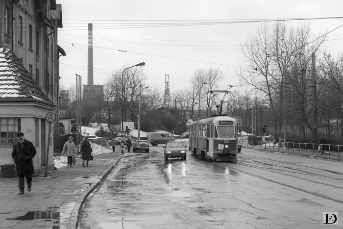 Lijn 7: 169; links is vaag nog een trein van de PKP te zien.