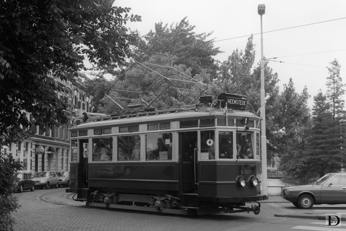 Om te vieren dat de A 327 70 jaar geleden door Beijnes werd af geleverd en 15 jaar geleden onderdak kreeg in de RET-remise Delfshaven, reed hij op zaterdag 2 juli 1983 ritten van Diergaarde Blijdorp naar de Provenierssingel bij de Schiekade.