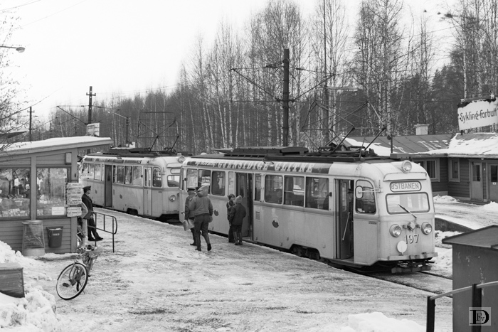 Tramstel van lijn 9 aan de beginhalte in station Jar. Dit station is gemeenschappelijk met de Kolsåsbanen, een voorstadsspoorweg.