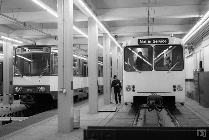 Edmonton 1001, als 600, en EVAG 5010 naast elkaar in remise Kruppstrasse te Essen.