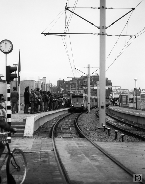 Van circa 12 tot 17 uur, na de officiële openingsrit dus, werd voor een ieder die dat wilde gratis gereden. Velen maakten van die gelegenheid gebruik, zoals de drukte op het perron hier toont.
